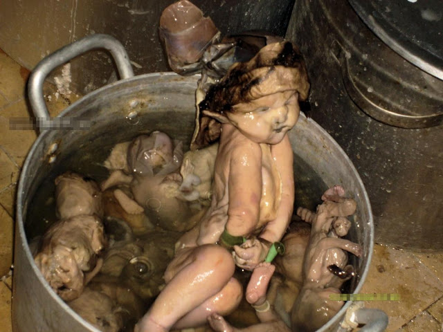 Um relatório de e-mail recebido pelo Seul Tempos confirmou a notícia com várias imagens vívidas e terrível de embriões e fetos humanos que estão sendo feitos em uma sopa para o consumo humano.